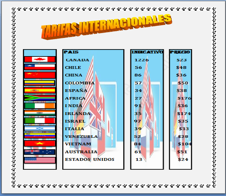 CONSULTA NUESTRAS TARIFAS NACIONALES Y INTERNACIONALES DESCARGANDO A CONTINUACION: